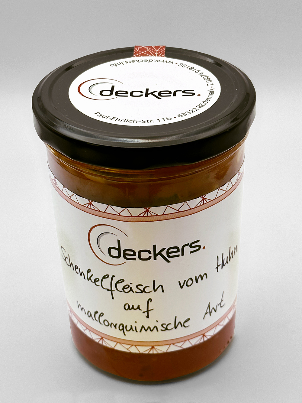 Das Schenkelfleisch ist zart und saftig, frei von Haut und Knochen. Die fruchtige Tomatensauce ist mit Kalamata Oliven, Paprika, Staudensellerie und gerösteten Pinienkernen verfeinert.